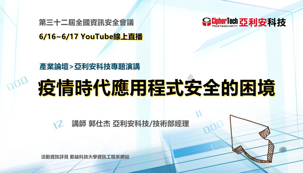 亞利安科技受邀參加本屆會議,將由郭仕杰(CJ)在會中演講,演講議題為【疫情時代應用程式安全的困境】,YouTube直播時間2022年6月17日下午13:30開始。