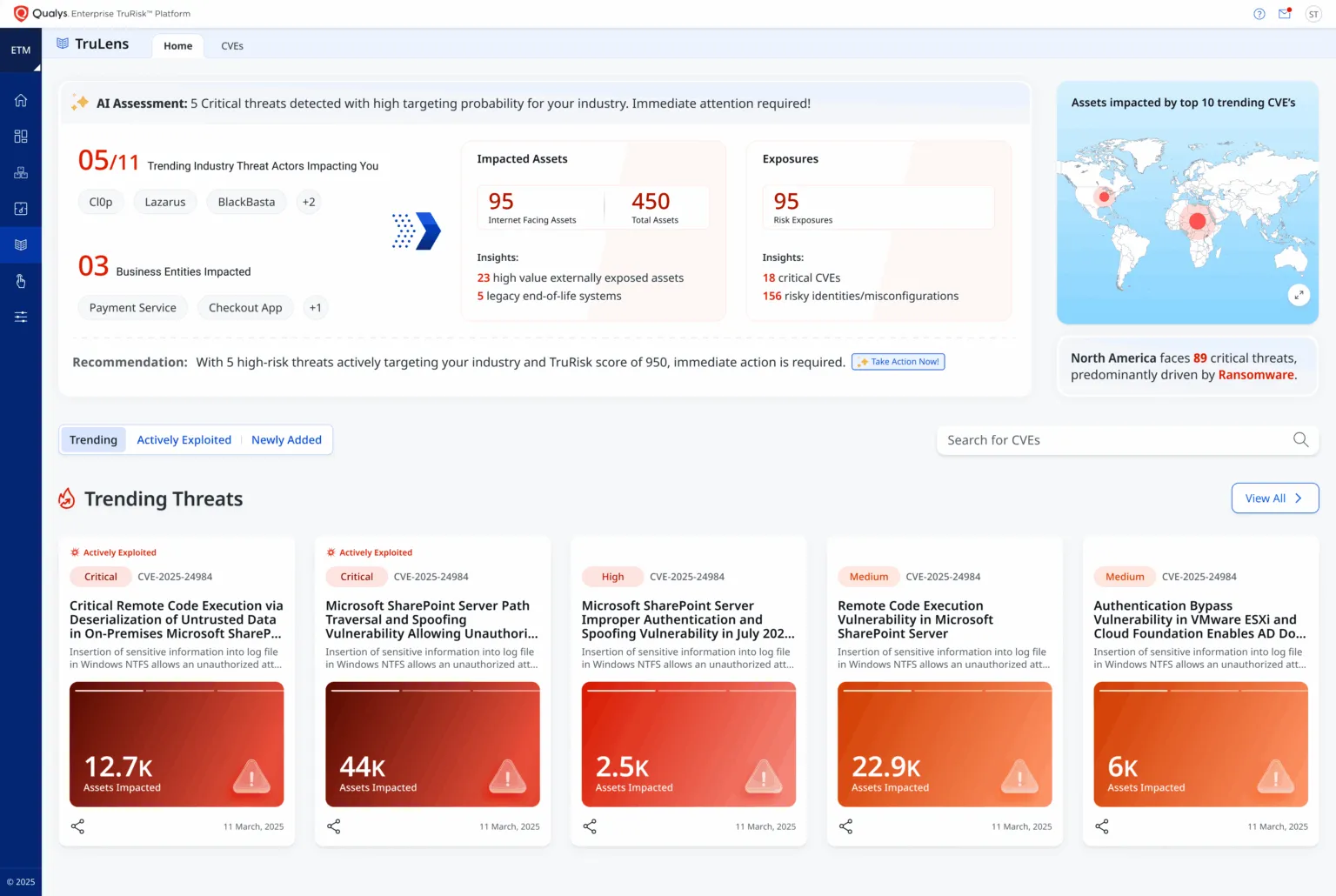 這種精準的方式讓資安團隊能將資源集中在經過驗證的威脅上,減少修復工作量,並以清晰、可行的情資立即採取行動。TruConfirm 不僅加快優先處理速度,降低平均修復時間(MTTR),也最大化資安團隊效率。整合於 Qualys ETM 生態系統中,它能精簡流程、減少告警疲勞,進一步強化企業整體防護能力。