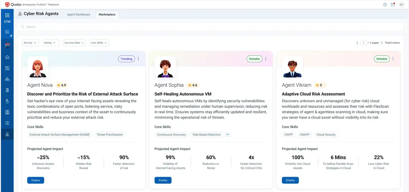 近期,Qualys 宣布這個框架的重要進化── AI 驅動的 ROC。藉由整合 Agentic AI 功能,徹底改變資安防護格局。如同擁有一個全天候的智能資安專家,全面掌握您的環境。Agentic AI 利用平台上的豐富資料,持續掃描各項暴露風險,精準識別並優先處理高風險漏洞,同時自動執行最佳修復策略。Cyber Risk Agents 會運用這些資料,支援多種關鍵應用場景,或依需求打造客製化應用,提升資安效率與防禦成果。