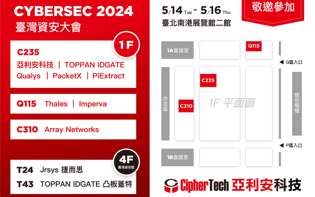 誠摯邀請您參加 CYBERSEC 2024 資安大會 今年 亞利安科技 攤位擴大展出,為大家展示全方位資安解決方案 現場更準備多項精彩活動,與大家分享最新的資安趨勢與解方 讓我們與您一同迎接資安領域的挑戰與機會 請參考上圖展攤編號,期待活動當天與您相見! 更多展攤活動資訊 議程介紹...
