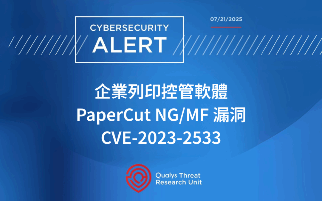PaperCut NG/MF 漏洞列入 CISA 已知可利用目錄 美國資安基礎設施安全局(CISA)將企業列印控管軟體 PaperCut NG/MF 一個高風險漏洞列入「已知可被利用漏洞目錄」(Known Exploitable Vulnerabilities Catalog),並建議用戶在 2025 年 8 月 18 日前完成修補。這個編號為 CVE-2023-2533 的漏洞,可讓駭客更改安全設定或執行任意程式碼。 PaperCut NG 與 PaperCut MF 都是列印管理軟體,PaperCut NG...